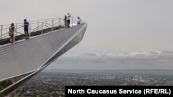 Немногочисленные посетители смотровой площадки "Лестница в небеса", которая недавно появилась в Грозном.