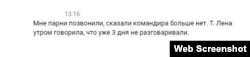 Еще один бывший сослуживец Суховецкого, написавший о его смерти во "ВКонтакте", рассказал Радио Свобода: "Парни позвонили, сказали: командира больше нет. Тетя Лена утром говорила, что уже 3 дня не разговаривали".